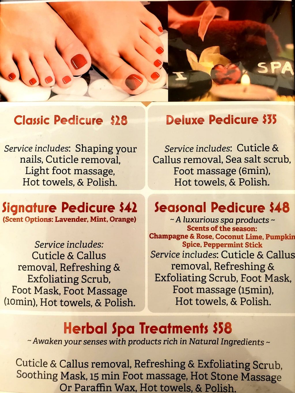 Come on in and get your nails done.  We provide Manicure, Pedicure, and