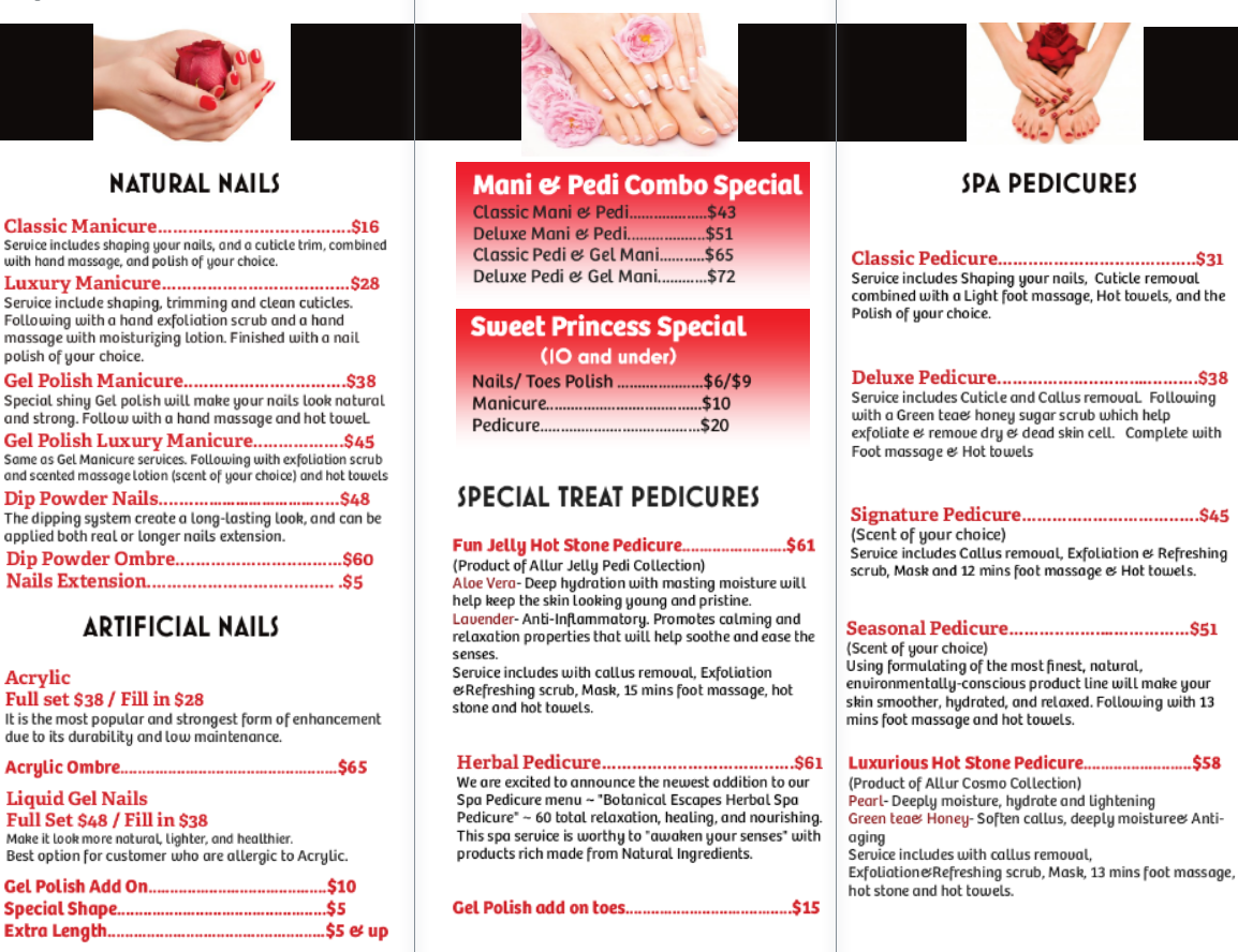 Come on in and get your nails done.  We provide Manicure, Pedicure, and
